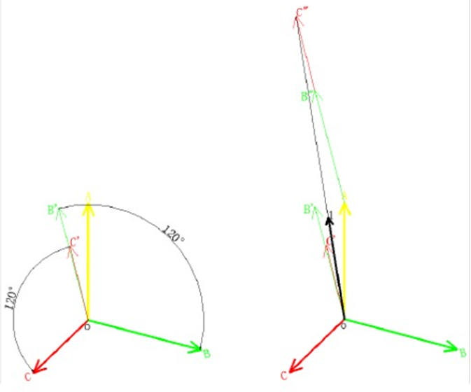 3:將新分解產(chǎn)生的每相各自相加,即可還原為源三相的各相電壓。