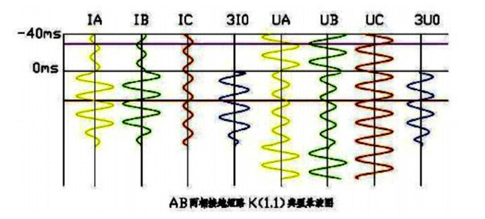 兩相接地短路故障錄波圖特點(diǎn):