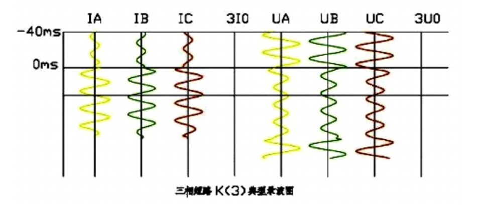 三相短路故障錄波圖特點(diǎn):